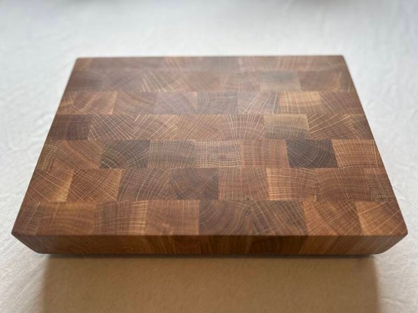 En kraftig skjærefjøl laget i massiv eik med endetre-mønster. Endetre gjør fjølen spesielt slitesterk og skånsom mot knivene dine, samtidig som den gir et vakkert, levende spill i treverket.